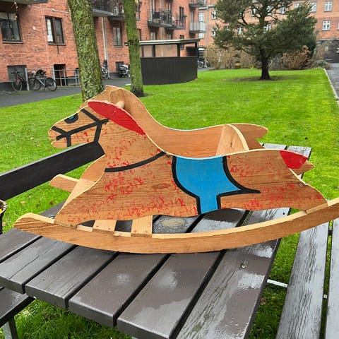 En super flot gyngehest i træ. Af ældre dato, men stadig super fin og holdbar!