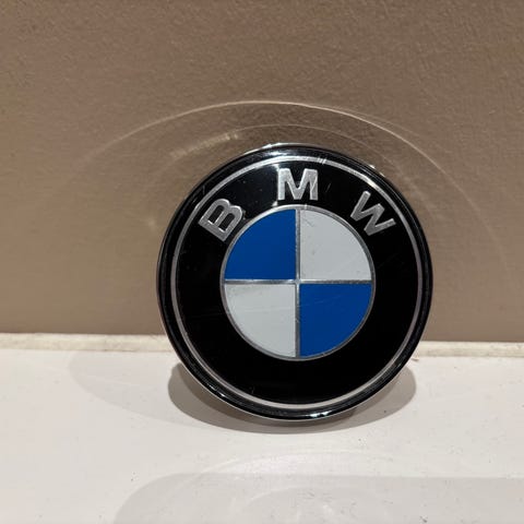 BMW Motors emblem med sort og guld farvet design. Emblemet har en skjoldform med BMW logo i midten og teksten 'BMW Motors'. Bagsiden har 3M klæbende tape til nem montering. To styk sælges samlet er lavet i metal