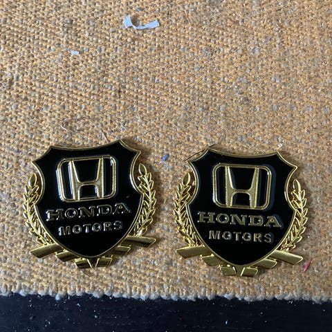 Opel Motors emblem sæt bestående af to emblemer i sort og guld. Emblemerne har en skjoldform med Opel logo og teksten 'OPEL MOTORS'. Bagsiden er udstyret med 3M klæbepuder til nem montering. Er lavet i metal