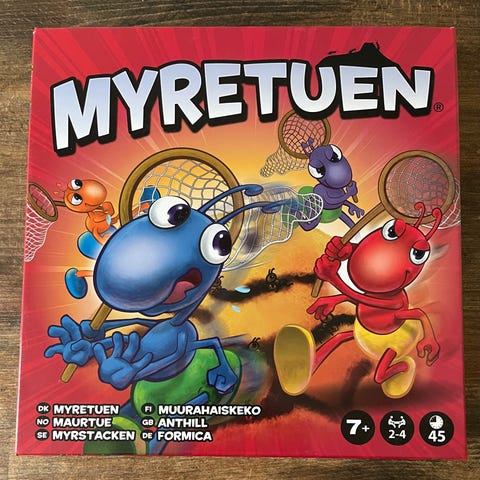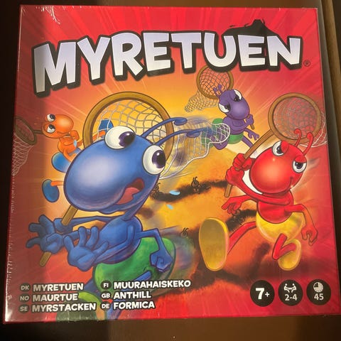Myretuen er et brætspil designet til familier og børn fra 7 år og op. Spillet inkluderer 4-5 spillere og fokuserer på samarbejde og strategi med myre-tema. Sender ikke for køb under 200 kr. Komplet. Mindre skade i låget.