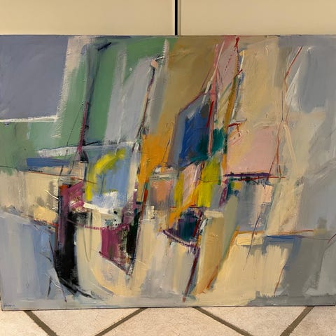 Akrylmaleri, Frans Vester, motiv: Abstrakt, stil: Abstrakt, b: 90 h: 70, Fantastisk smukt og varmt maleri fra Malericentralen i Snejbjerg. Pris på galleri over 3000,- kr.