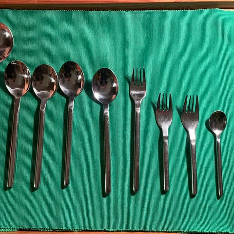 12 middagsgafler L 20 cm pr. stk. 8 kr.
