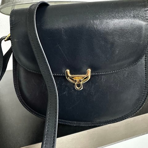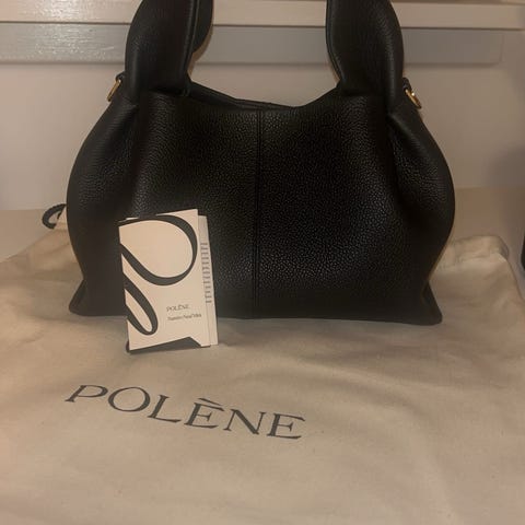 Polène lædertaske til kvinder i brun farve. Tasken har en kombination af glat læder og ruskind, med en justerbar skulderrem. Indvendigt er tasken foret med stribet stof og har flere rum til opbevaring. Lukkemekanismen er en metallåse.