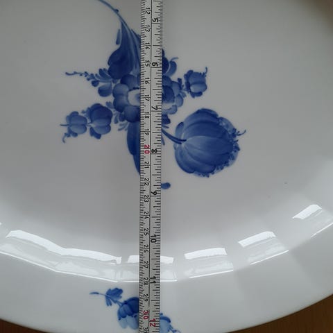 Blå blomst stort ovalt serveringsfad