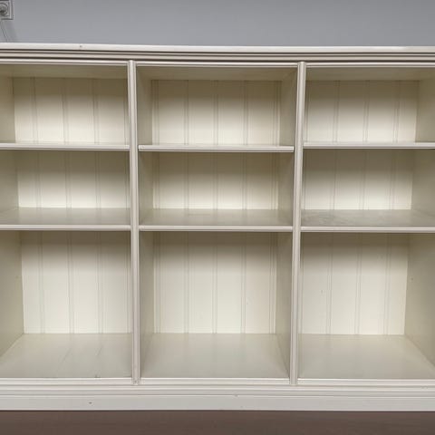 Reol 9 huler. Høj 112 cm, bredde 105 cm, dyb 33 cm