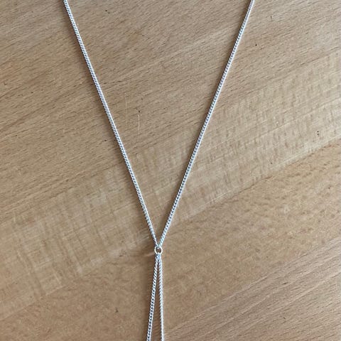 En virkelig flot halskæde i sølvlook. Kæden har 2 vedhæng integreret i hver ende af kæden hvilket giver et spændende look.