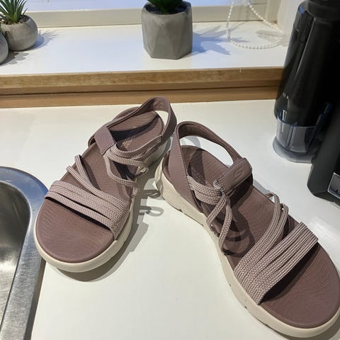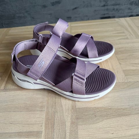 Sandal med Arch Fit-sål, der giver ekstra svangstøtte. Sandalen kan justeres 3 steder (ved hæl, vrist og forfod). Kan vaskes i vaskemaskine. Farve: lysegrå (taupe).