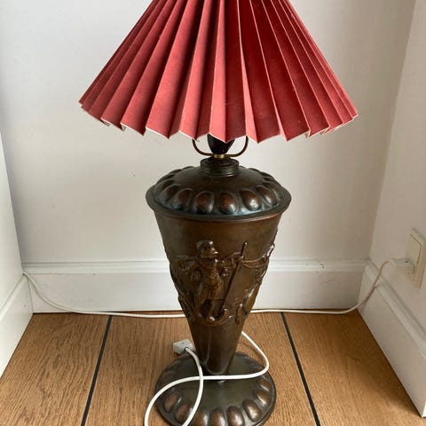 Lampen er ca 55 cm højde og skærmen ca 23 cm i diameter.