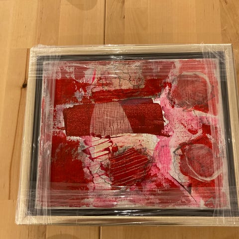 Rød abstrakt maleri med tekstureret overflade. Maleriet har en firkantet form og er velegnet til vægophæng i hjem eller kontor. Farven domineres af forskellige nuancer af rød.