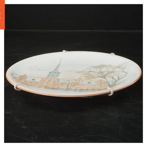 Ukendt mærke, dekorationsfad i rund form lavet af metal med sølvfarvet finish. Fadet har et mønstret design med cirkulære og dekorative detaljer. Velegnet til brug som dekoration eller til at holde små genstande.