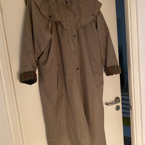 Oilskinsjakke eller fra en varm vinterjakke med lækkert vatteret indre på ryg og mave, mens ærmerne er holdt uden vattering. Ydermaterialet er voksbehandlet så den er vandafvisende.