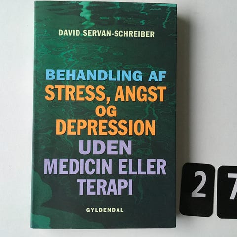David Servan-Schreiber Behandling af Stress, Angst og Depression Bog uden medicin eller terapi. Indeholder metoder og information om håndtering af stress, angst og depression uden brug af medicin eller terapi. Teksten beskriver naturlige tilgange og videnskabelige studier relateret til mental sundhed.