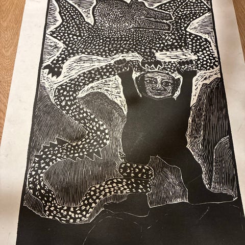 Skønt billede af Herman Stilling med motivet "Sankt Jørgen og Dragen". Flot ramme med passepartout. Original signatur. Måler 68x55. Kan sendes.