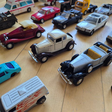 Her er en samling legetøjsbiler i brugt stand. Standen vurderes ved at kikke på billederne. Velegnet til samlere og som dekorativ genstand.