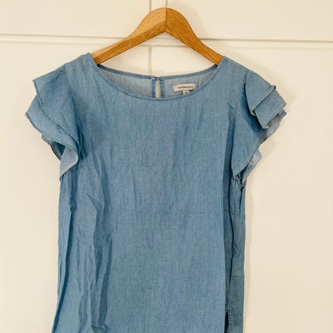 Farverne er fra hvid, Lysegrå, himmelblå til marineblå. 130 cm Ø Bryst, 80 cm lang, ærmegab 60 i Ø.