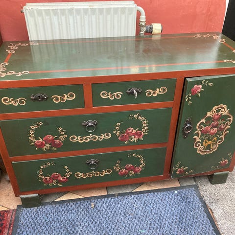 Blå almuemalet kommode. Vi sælger da vi ikke har plads mere.