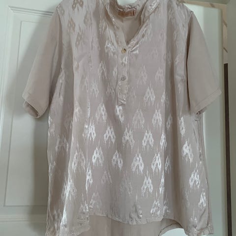Super flot mesh top i en blush pink med guld. Den har en normal pasform med lange ærmer og går til hofterne, samt har rund hals. Style den evt med en kjole eller strik. Kvalitet: 65% polyester, 30% viskose og 5% elastane