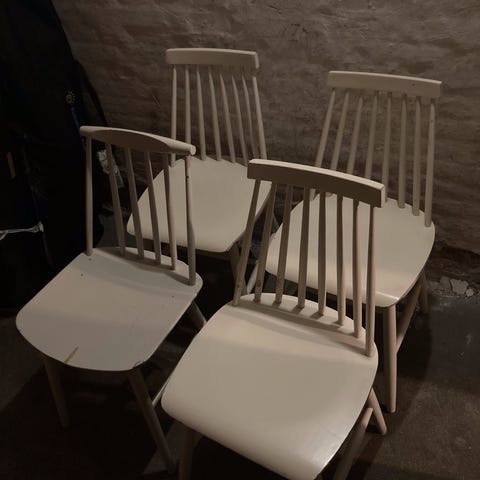 Retro spisestuestole (4 stk) i lakeret massiv bøg. Dybden er sædedybden. Prisen er pr. stk. Sælges samlet. Samme stil som FDB-stolene.