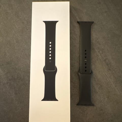 Apple Watch Sport Band rem i blå silikone, designet til 40mm Apple Watch. Remmen er S/M i størrelse og egnet til brug med Apple Watch modeller, der understøtter denne størrelse. Materialet er silikone, hvilket giver fleksibilitet og komfort ved daglig brug.