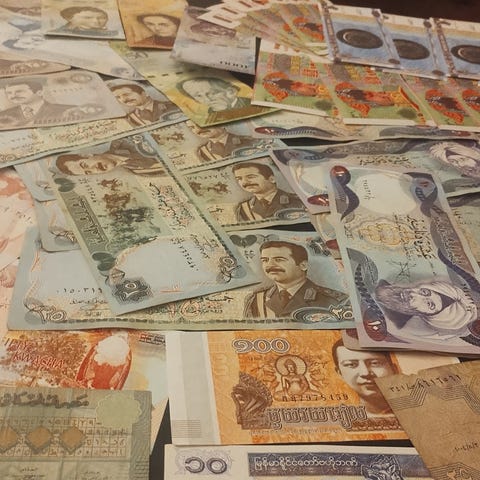 10 sedler med berømte leder i verden.