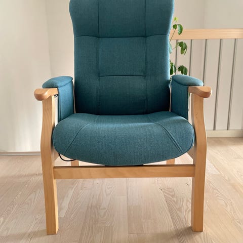 Stolen er udstyret med elektrisk sædeløft. Man får hjælp til både at sætte sig og rejse sig.