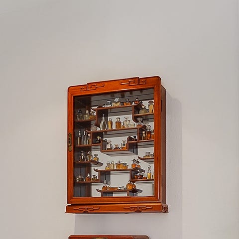 Gammelt antikt glasskab