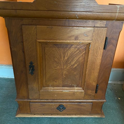 Antik Træskab/tobaksskab med Skuffe og Hylde