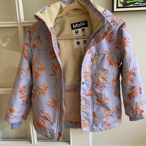 Molo Softshell Jakke i størrelse 110 til piger. Jakken har multifarvet mønster med blomsterprint og er udstyret med hætte. Indvendigt er jakken foret med gråt fleece materiale, som giver ekstra varme og komfort. Jakken har elastik i taljen og lommer med lynlås. Materialet er velegnet til udendørs brug og beskytter mod vind og let regn.