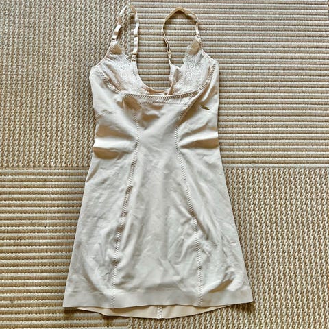 Fin underkjole i beige med påsatte blonder.