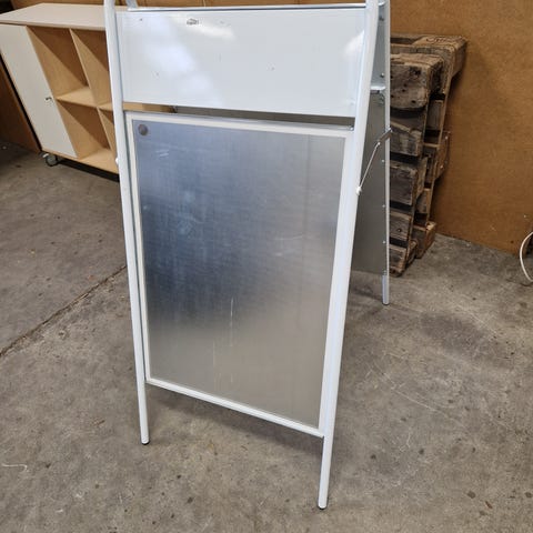 Uden Mærke metal svingbar skilt med sort finish. Består af en firkantet plade og en stang med dekorativt spidsdesign. Velegnet til ophængning af skilte eller lignende genstande på væg.