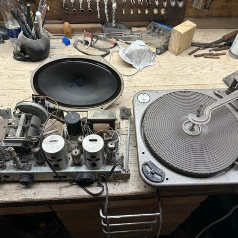 Garard SRF10 Arena pladespiller med træ kabinet. En vintage enhed designet til afspilning af vinylplader. Pladespilleren har en manuel tonearm og en drejeskive til plader. Kabinettet er lavet af træ med ventilationsåbninger på siden. Produktet er velegnet til samlere eller brugere, der ønsker en analog lydoplevelse. Der er 2stk. Arena og Aristona. Kender ikke til om de kan spille