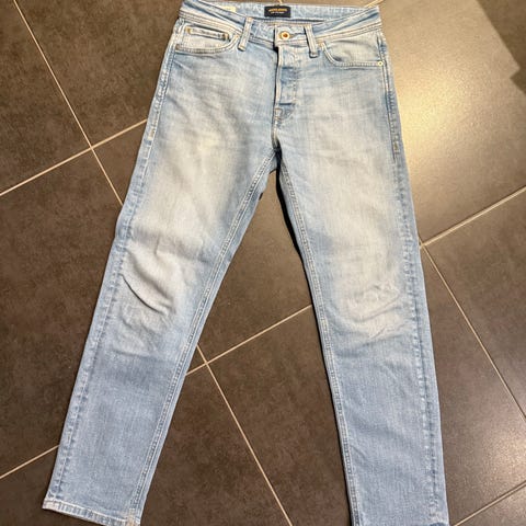 Jack & Jones Tapered/Mike jeans i blå farve. Str. 29/32. Fremstillet i denim materiale med tapered pasform.