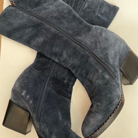 Superflotte lange støvler i sort ruskind af mærket Stylesnob Copenhagen. Lynlåsen sidder bagpå.
