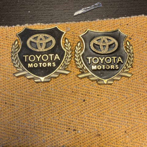 Ford Motors Emblem Sæt i sort og guld. Sættet indeholder to emblemer med Ford Motors logo og to 3M klistermærker til montering. Emblemerne har et klassisk design med sort baggrund og guldkant. Velegnet til bildekoration eller reservedelsbrug. Lavet i metal