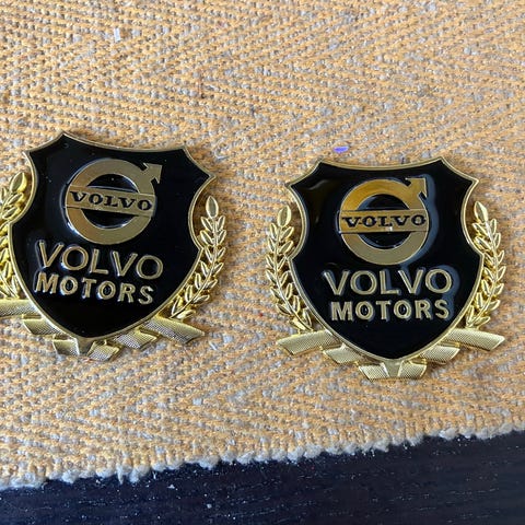 Skoda Motors emblem i sort og guld. Emblemet har en skjoldform med grøn og sort farve samt guld detaljer. Bagsiden har 3M klistermærker til nem montering. Passer til brug på biler eller som dekorativt tilbehør. To styk. Lavet i metal