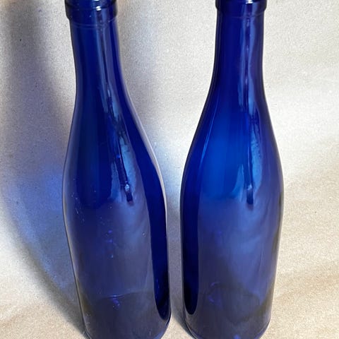Søgeord: Flasker, Vinflasker, Blå, Glasflasker, Gamle flasker, Blå glas, Glas