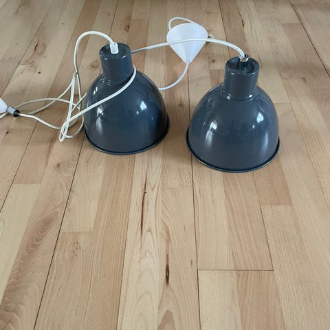 2 stk grå loftslamper, h45, ø19. Passer til E27. Fejlkøb, aldrig brugt. Nypris 680,- pr. stk.