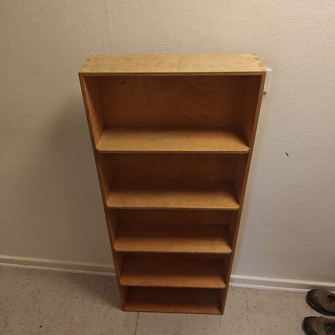 Træylde med træ-hyldeknægte. Lige til at hænge op. Kan afhentes ved Lergravsparken.