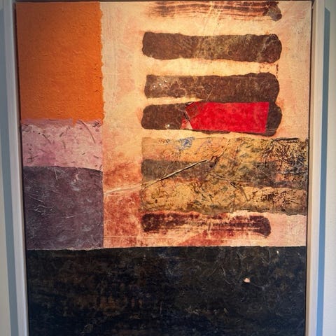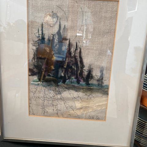 Monteret i flot lys træ-ramme med håndlavede kobber-inddelinger.