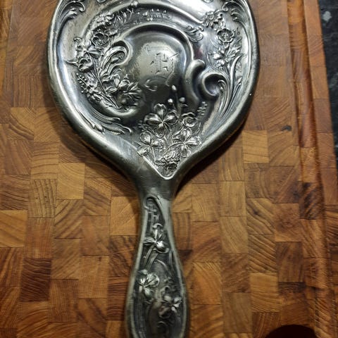Japanske håndspejle / dobbeltspejl hvor det ene passer ind i det andet. Smukt dekoreret på ydersiden.
