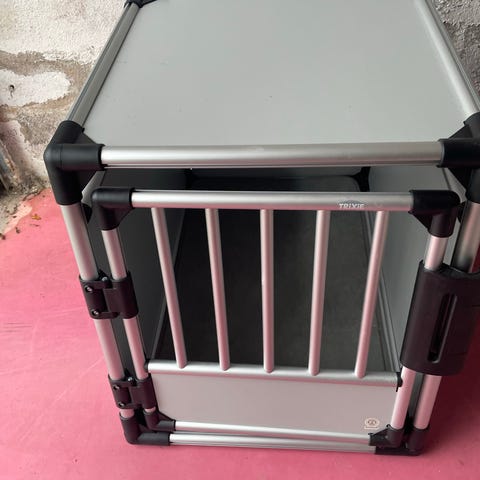 Transportbur til hunde fra Trixie. Beregnet til hunde op til 40 kg. Buret er lavet af alominiumsrammer og er let med en stærk og støjsvag konstruktion. Det er designet med skrå får og bagvægge for optimal udnyttelse af pladsen. Højden er 60 cm