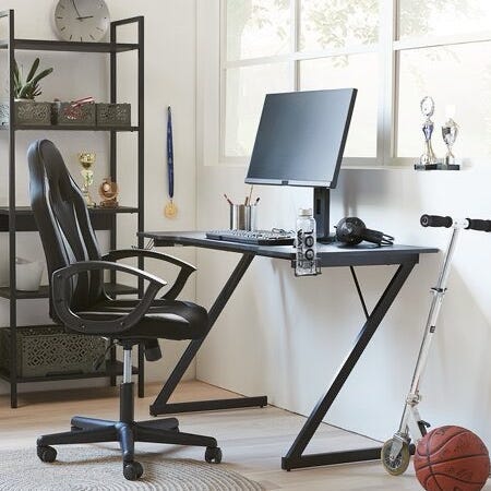 Black L-shaped desk