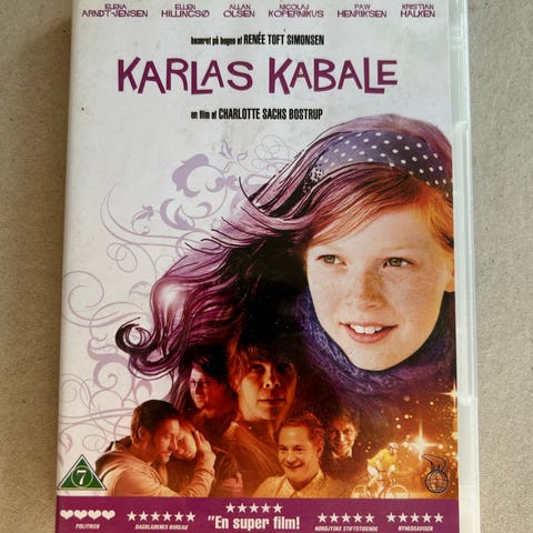 Karlas Kabale DVD Film med dansk tekst. Indeholder filmen Karla's Kabale, en familiefilm med fokus på børns oplevelser og relationer. DVD'en er i standard format og indeholder ekstra materiale som billeder og information om filmen.
