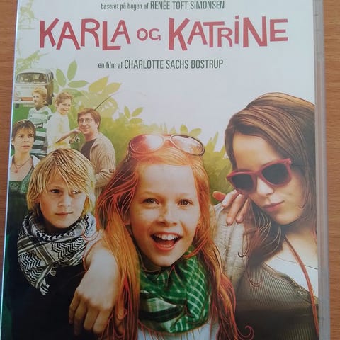 Karla og Katrine DVD film på dansk sprog. Inkluderer filmens cover, bagside med beskrivelse og disk. Egnet til visning på DVD-afspillere.