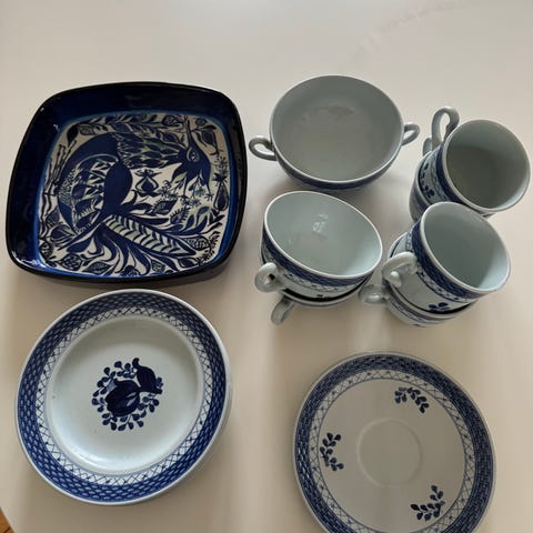 Royal Copenhagen Tranquebar. 7 kopper, underkopper og tallerkner, diverse fade og lysestage. Alt uden skår.. Sælges samlet.
