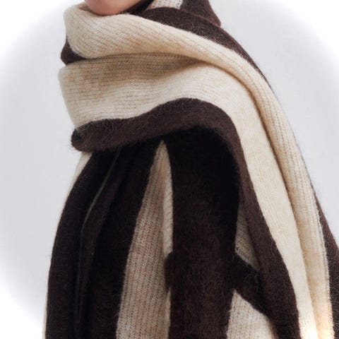 Part Two blåt og hvidt mønstret modal og uldmix tørklæde