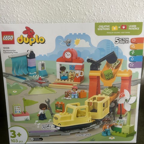 LEGO DUPLO Andet Tog Legetøj med farverige byggeklodser, der inkluderer dyremotiver og figurer. Sættet er designet til børn i alderen 1½ til 5 år og indeholder flere klodser, der kan samles til et tog med dyretema. Materialet er plast, og legetøjet fremmer kreativ leg og motoriske færdigheder.