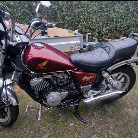 Sjælden model. Bygget i USA. Honda blev sagsøg af Harley på grund af modellen fordi den ligner og lyder som en Harley. Står stort se som da den forlod fabrikken i 1998.
