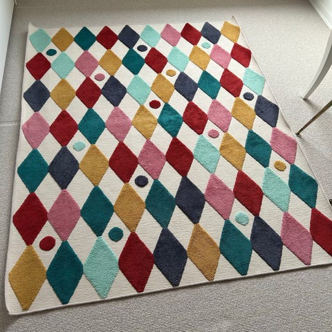Sælger et skønt, farverigt børnetæppe med et unikt og fantasifuldt design. Det er perfekt til børneværelset eller legeområdet!