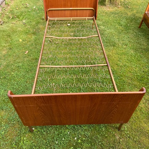 Fin gammel elevationsseng i teak. Kan nemt skilles ad og samles. Madras i god stand medfølger. Pefekt til børn eller voksne der ønsker at